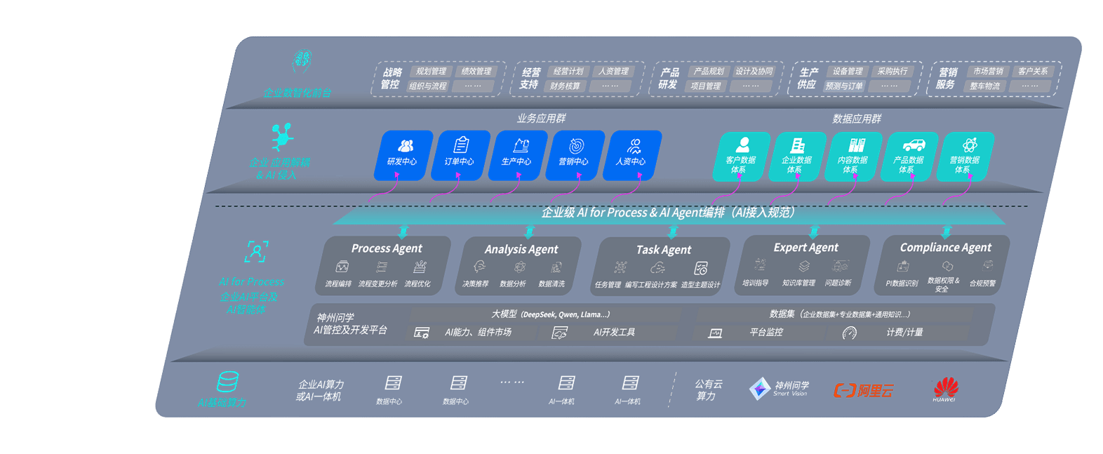 盛鸿国际问学智车解决方案是一套基于AI技术的汽车行业智能化系统,,,覆盖从底层算力到顶层AI应用的全栈方案。。方案由算力层、、、模型层和应用层组成:算力层,,方案支持多种一体机配置,,,,具备云端灵活部署、、多云适配以及动态优化计算资源的能力;模型层,,,,盛鸿国际问学平台版提供了企业级AI应用一站式构建与管理平台,,,,支持基于后训练强化技术的汽车企业专属模型的训练、、、、评测和运营;应用层,,,盛鸿国际问学DeepSeek版提供包括超级员工、、智能招采、、智能营销、、智能客服、、、AI for BI等一系列解决方案,,可助力汽车行业实现数字化转型,,,,让管理更智能、、、、响应更敏捷。。。